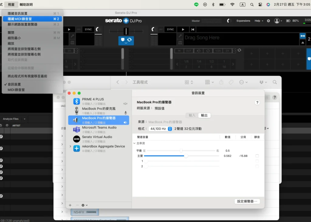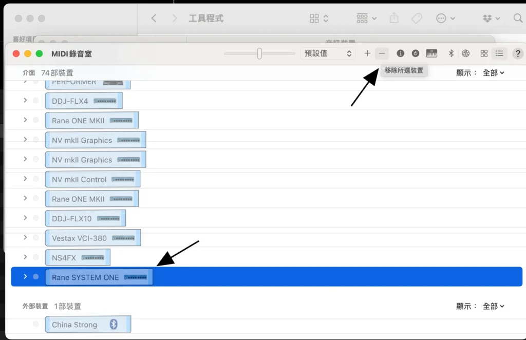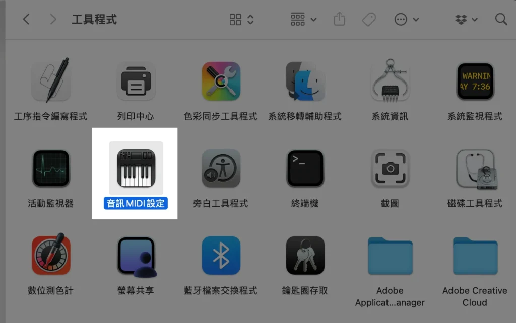 - 打開工具程式>音訊MIDI設定>顯示MIDI錄音室